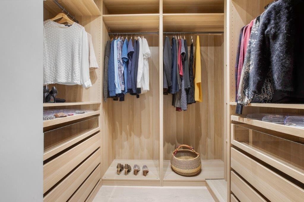 Det opprinnelige kjøkkenet ble gjort om til henholdsvis soverom og «walk-in» garderobe. Slik fikk vi utnyttet boligens areal på en bedre måte. Den ble nå en tre-roms leilighet med et ekstra soverom. Se plantegning før og etter under.